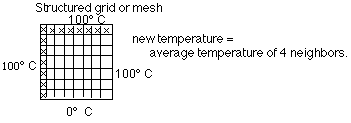 | (perhaps the average of the edge values, or the temperature of the nearest edge value, or anything else. The choice of initial values affects the speed with which the process converges to a fixed set of values, but not the final solution.) |  |