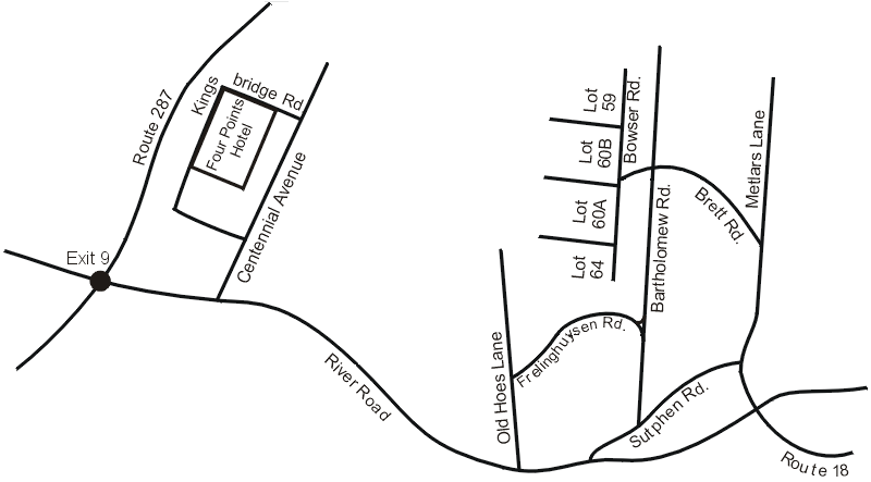 - Leaving parking lots (59, 60B, or 64), follow Brett Road to Metlars Lane.