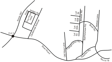 - Take Metlars to bottom of hill and turn right onto River Road.